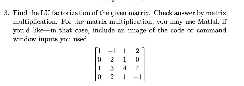 Solved 3. Find the LU factorization of the given matrix. | Chegg.com