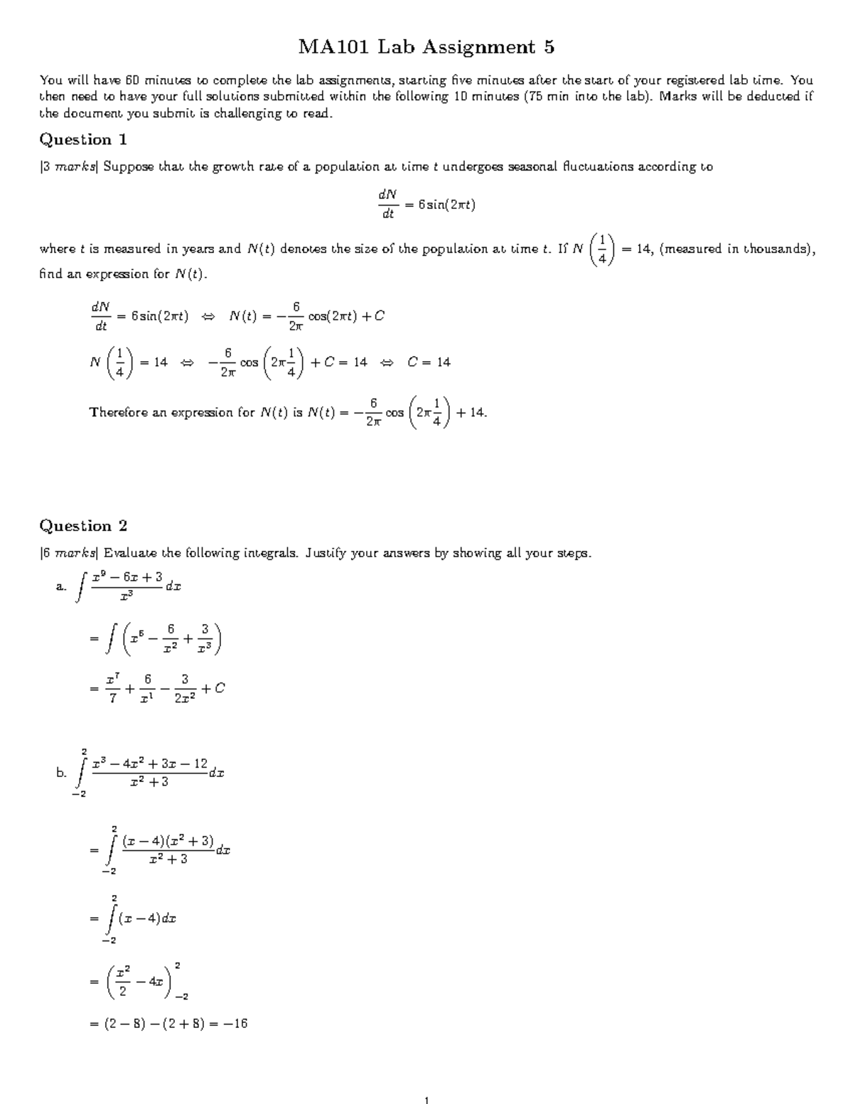 Lab 5 Solutions - MA101 Lab Assignment 5 You will have 60 minutes to ...