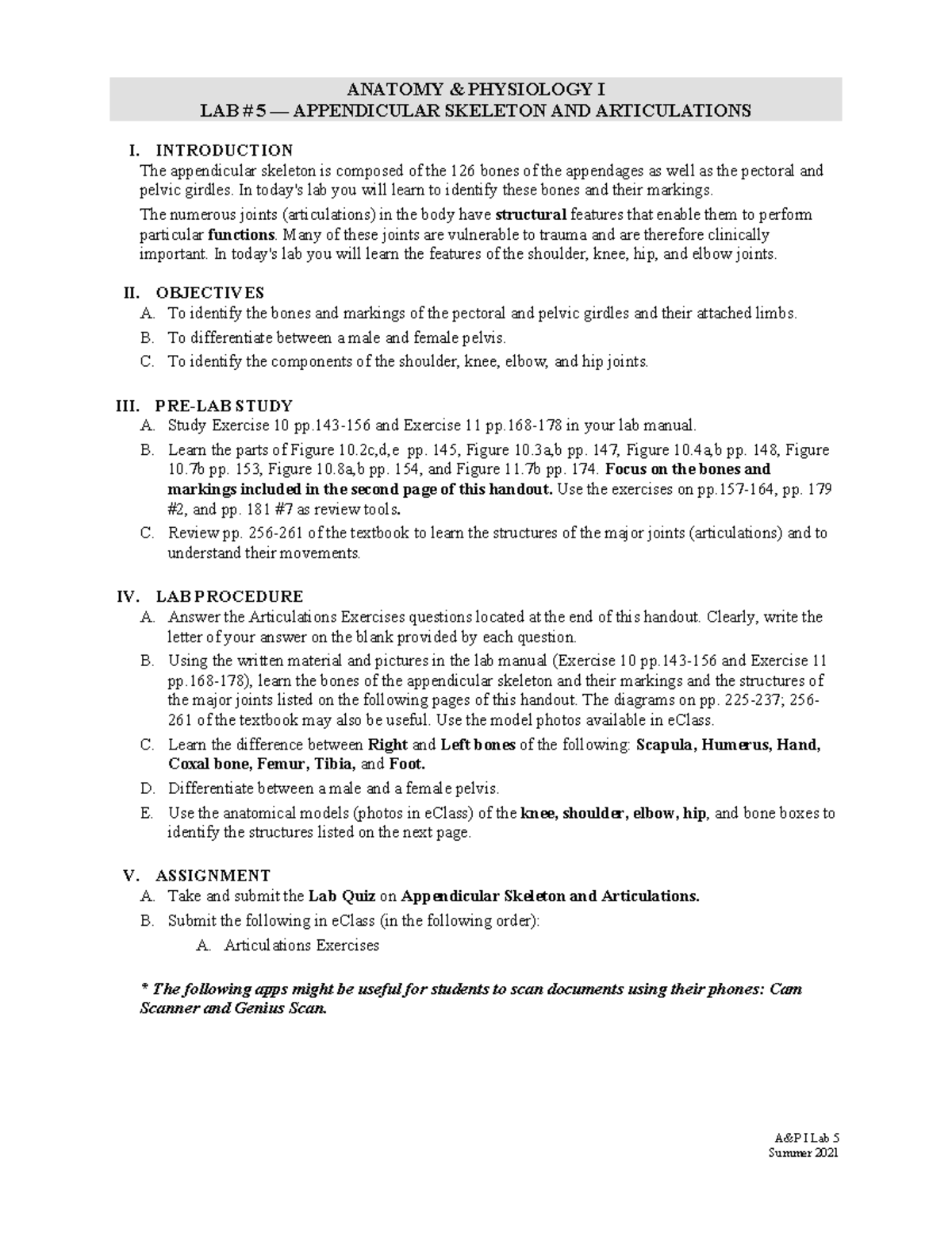 Lab 15 - Complete lab with lab assignments. - A&P I Lab 5 Summer 2021 ...