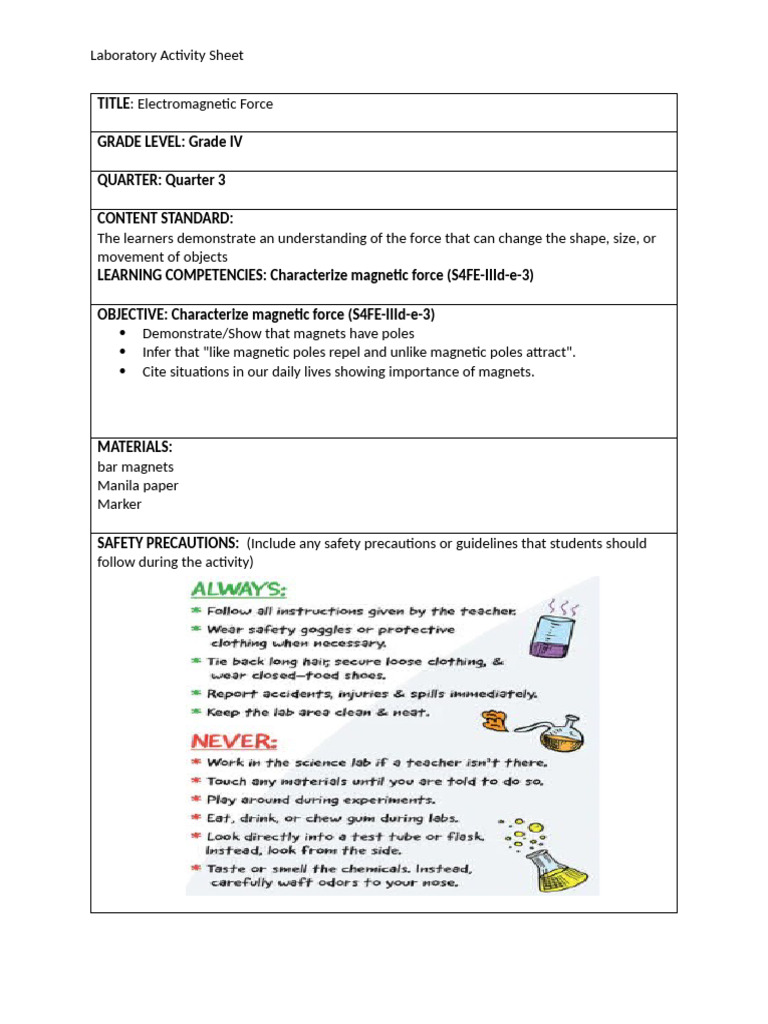 Laboratory Activity Sheet Template (AutoRecovered) | PDF | Force | Magnet