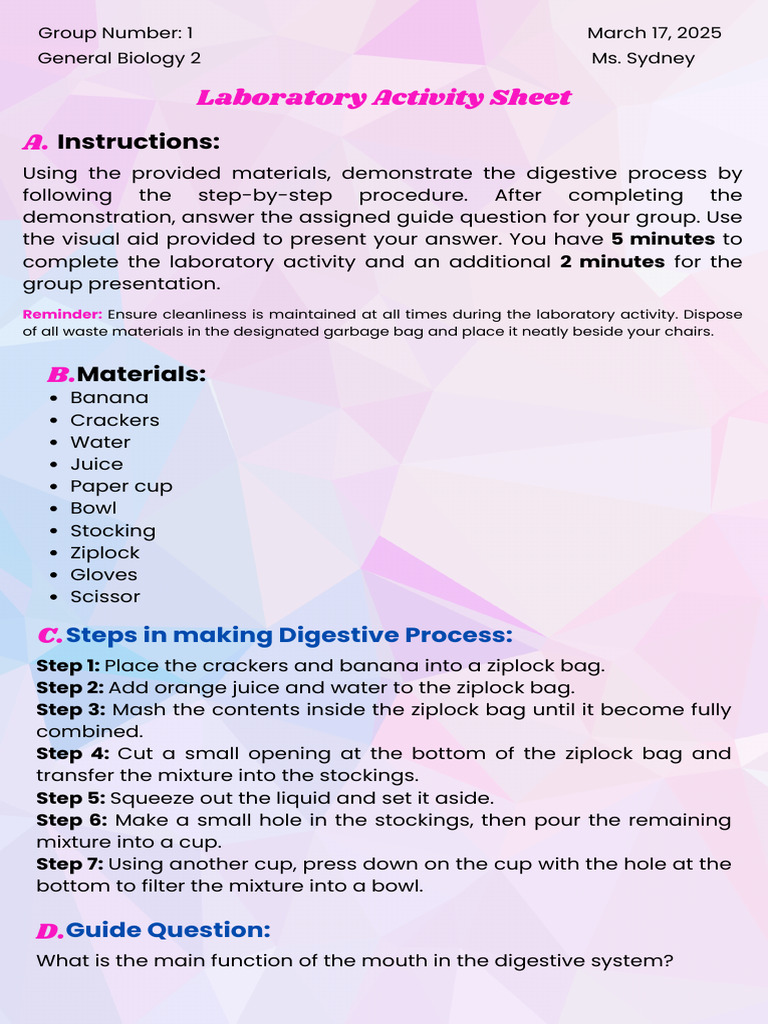 Laboratory Activity Sheet | PDF | Juice | Diet & Nutrition