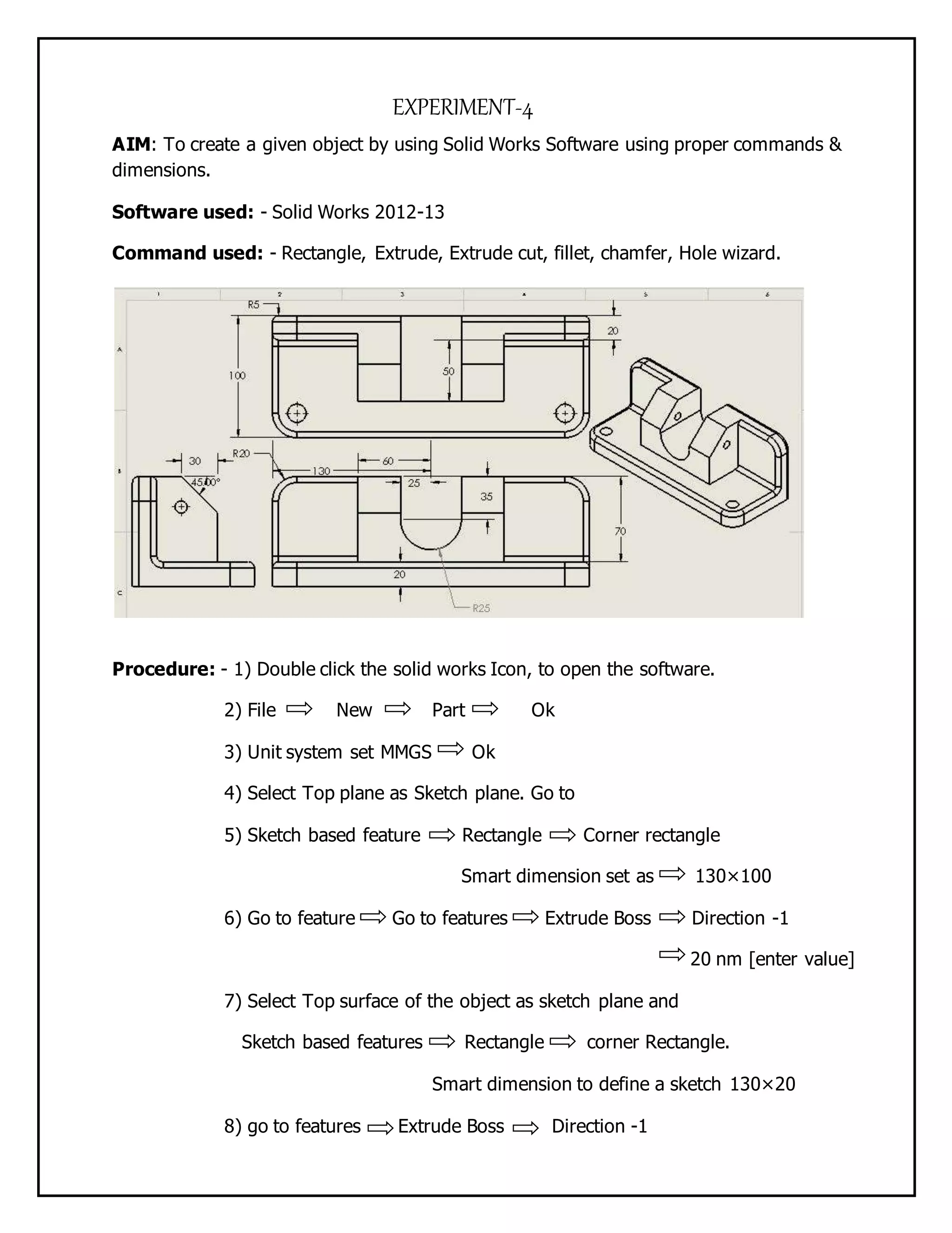 SolidWorks Lab #1: Introductory Part Design, Extrusion, and | Course Hero