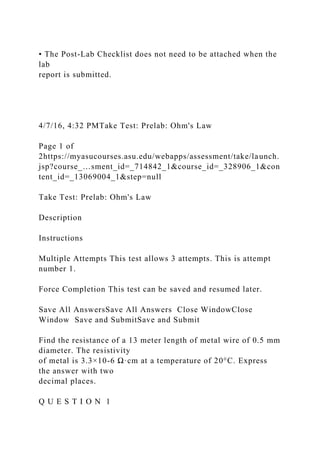 Answered: Instructions Complete the Post-lab for… | bartleby