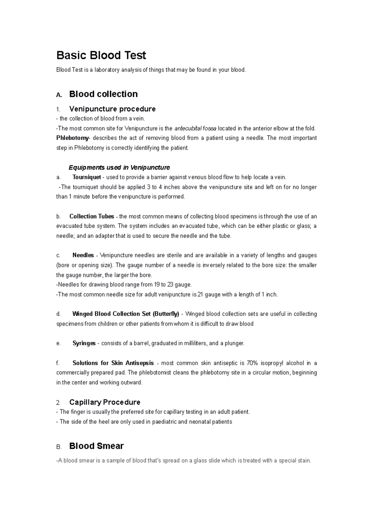 Lab module 10 Basic Blood Test - Basic Blood Test Blood Test is a ...