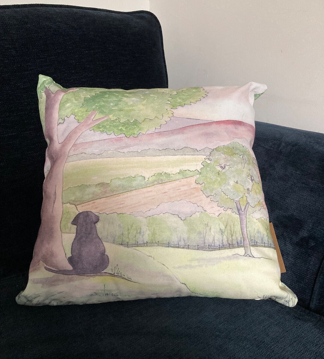 Black Lab Cushion Cover: Country Scene, Recycled Polyester (45cm Square ...