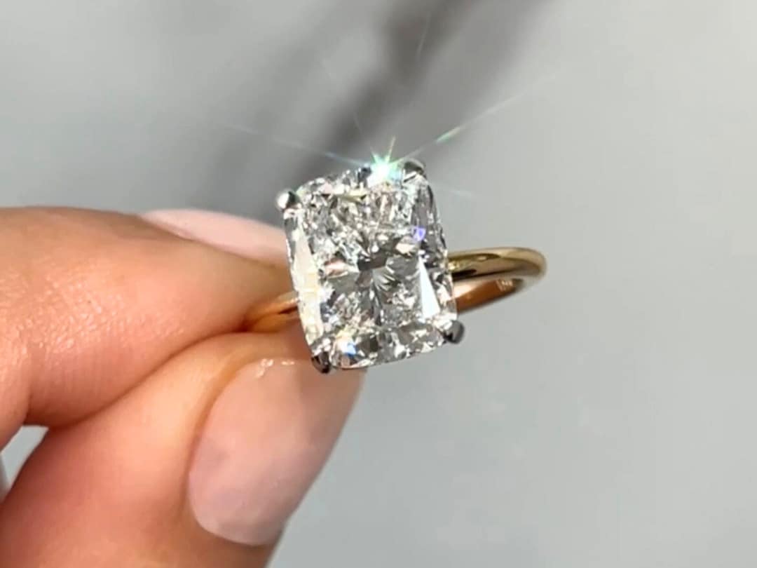 4 Carat Elongated Cushion Lab Grown Diamond Engagement Ring / Hidden ...