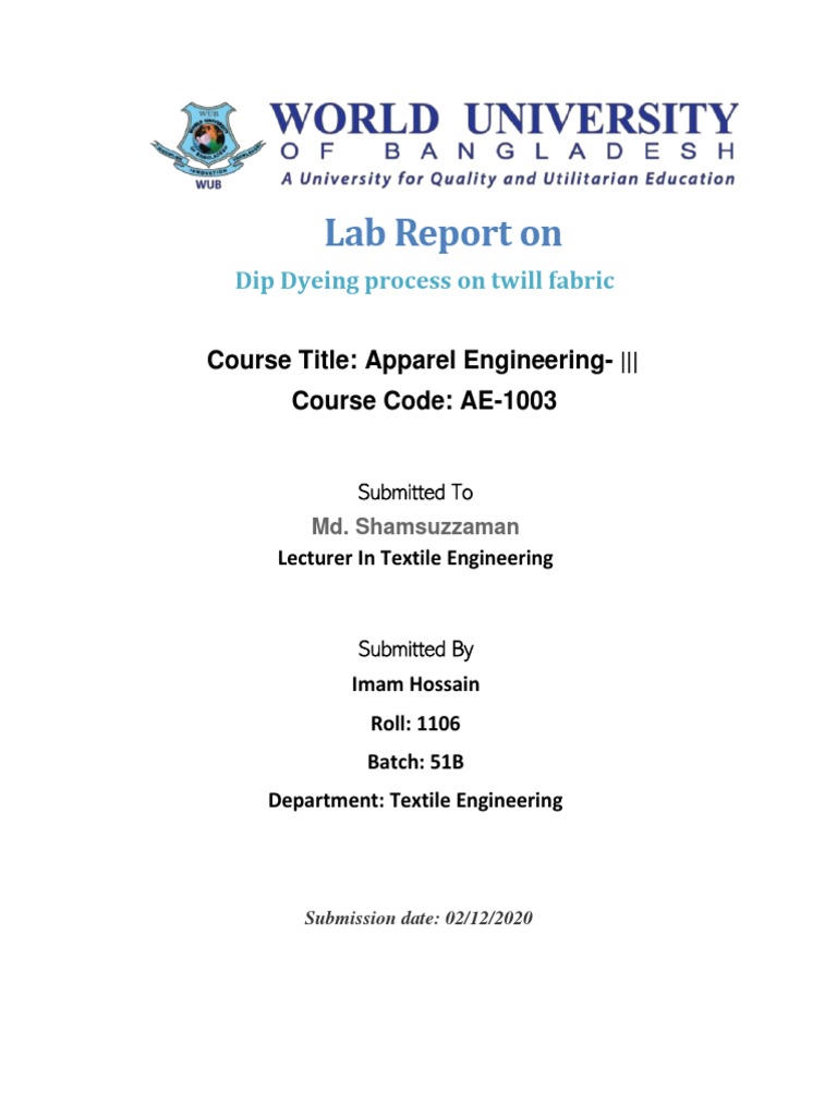Lab Report On: Dip Dyeing Process On Twill Fabric | PDF | Dyeing | Dye