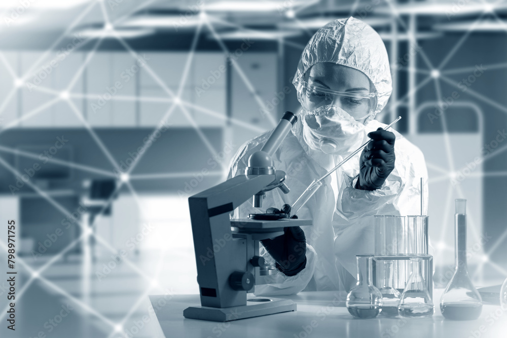 Laboratory employee works with virus samples in a sterile room Stock ...