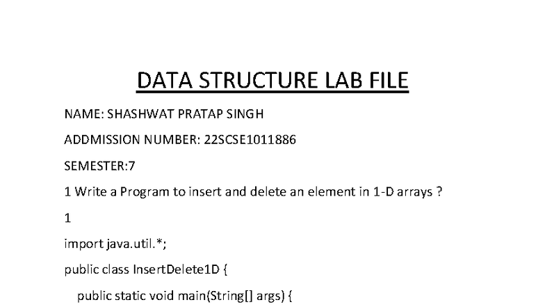 DATA Structure LAB FILE - DATA STRUCTURE LAB FILE NAME: SHASHWAT PRATAP ...