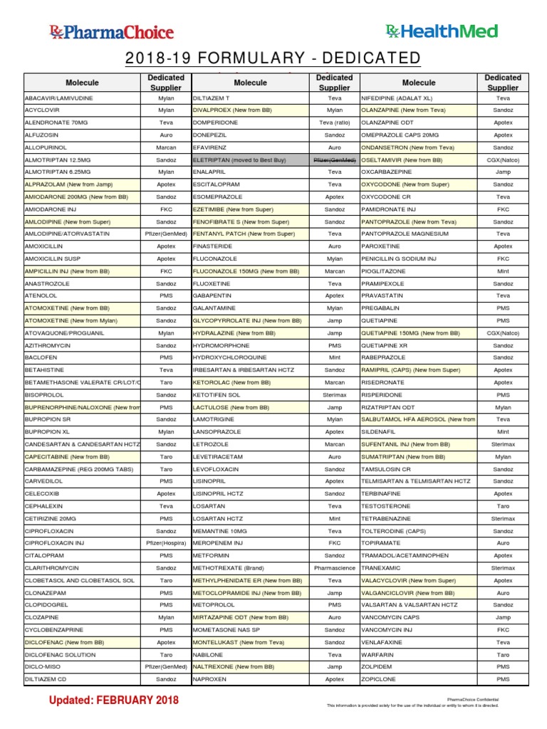 2018 Generic Formulary - Dedicated and Super Molecule Summary | PDF ...