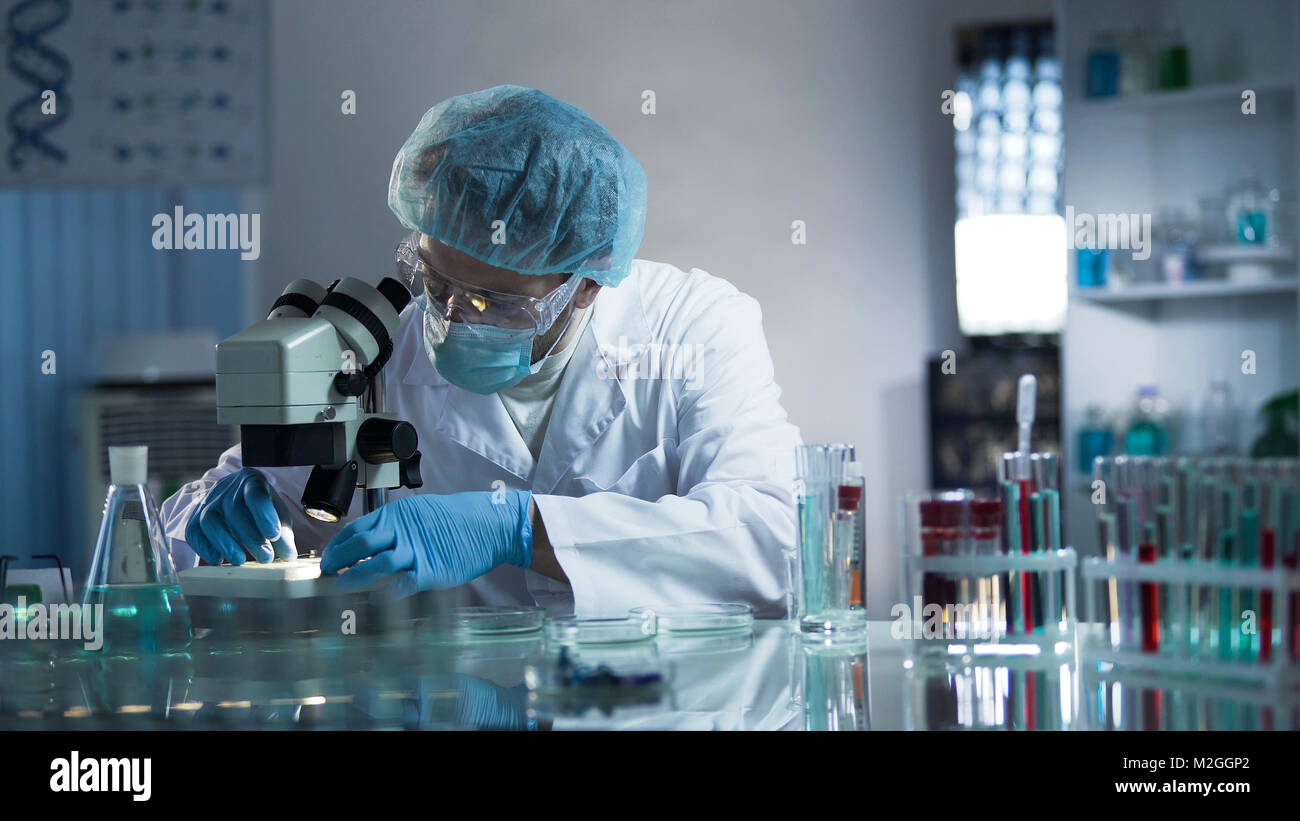 Lab technician working in lab with magnifying glass Stock Photo - Alamy