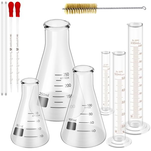 JESSTOLO Laboratory Glassware Set - 50ml Flask, Beaker, 10/5ml Cylinder ...