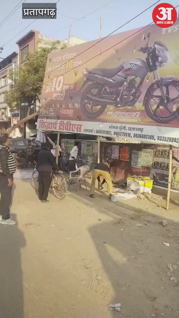 प्रतापगढ़ में अवैध रूप से लगाए गए होर्डिंग बैनर को प्रशासन ने हटवाया ...
