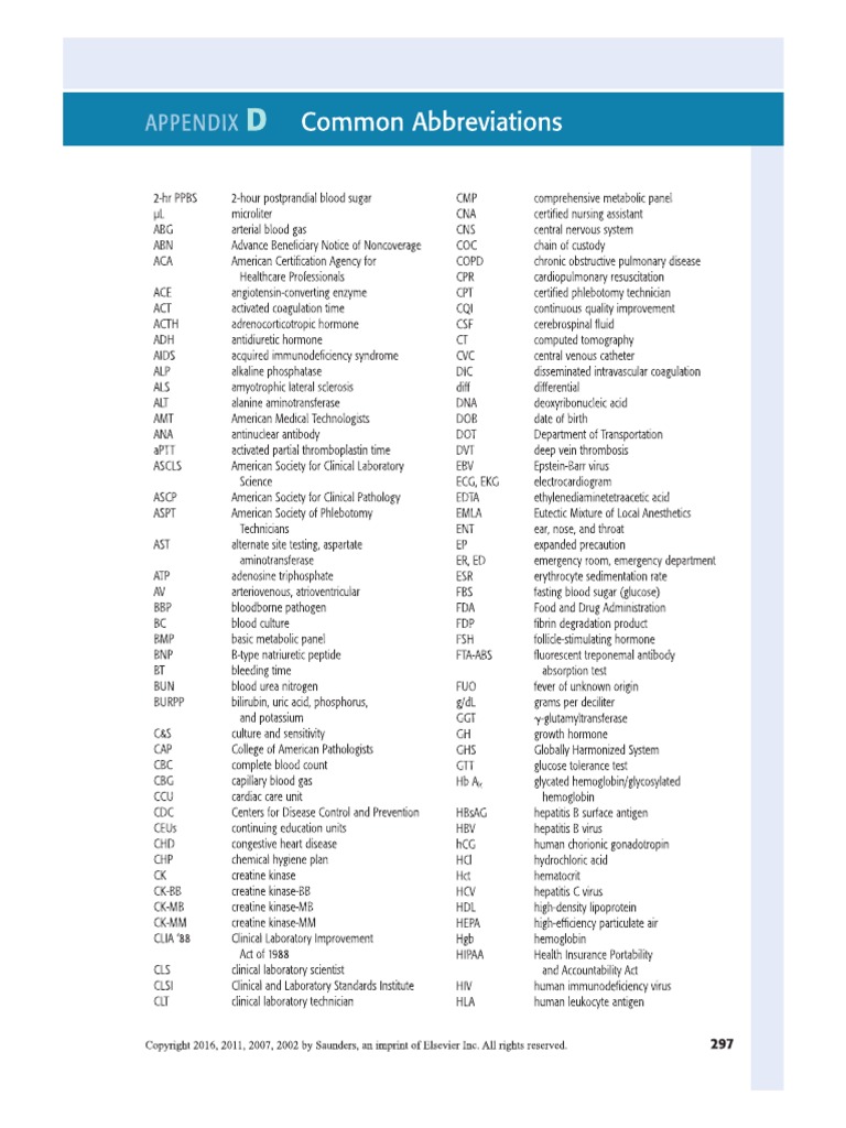 Medical Abbreviations Commonly Used In Laboratory Tests at Teresa ...