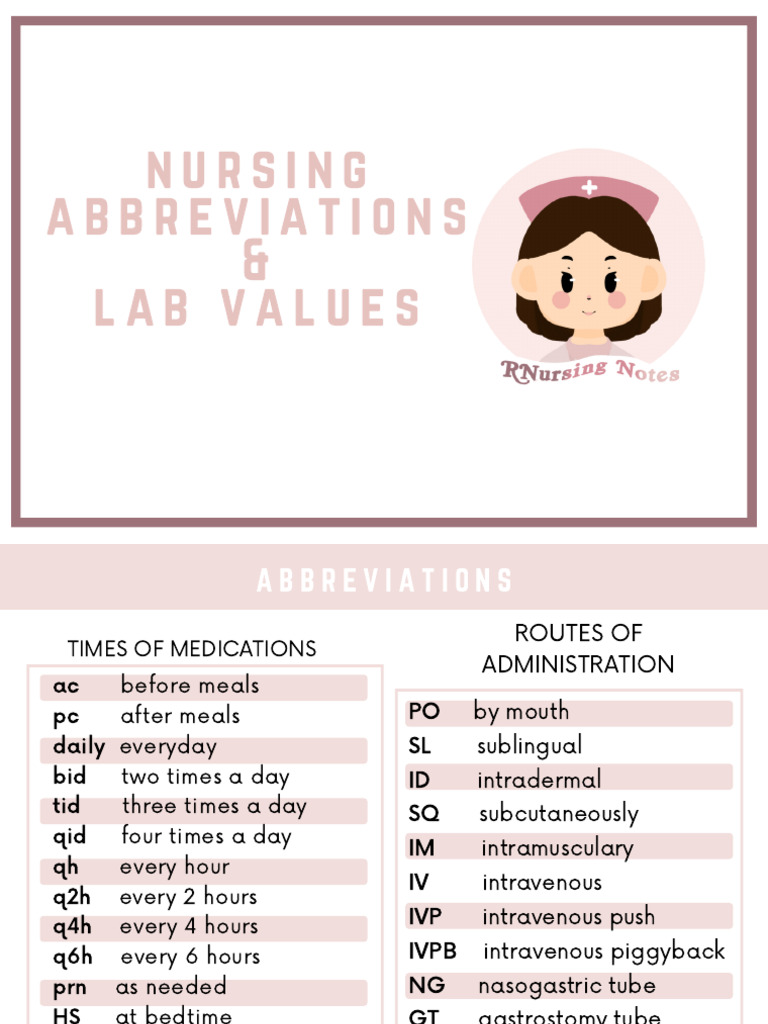 Nursing Abbreviations & Lab Values-1 - 240830 - 014912 | PDF