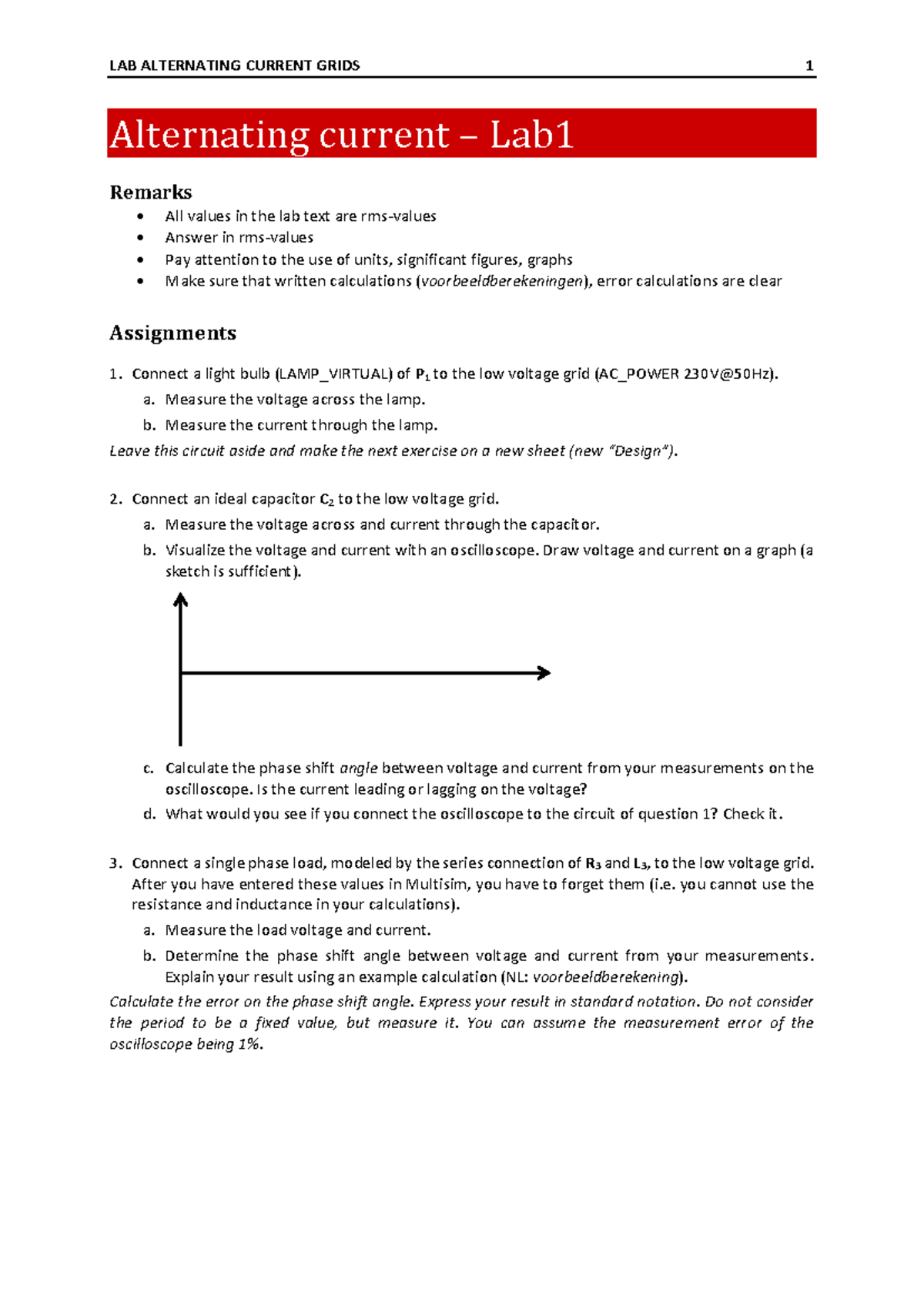 Lab1 Labtext 2425 - AC Grids Lab: Measurements & Calculations - Studocu