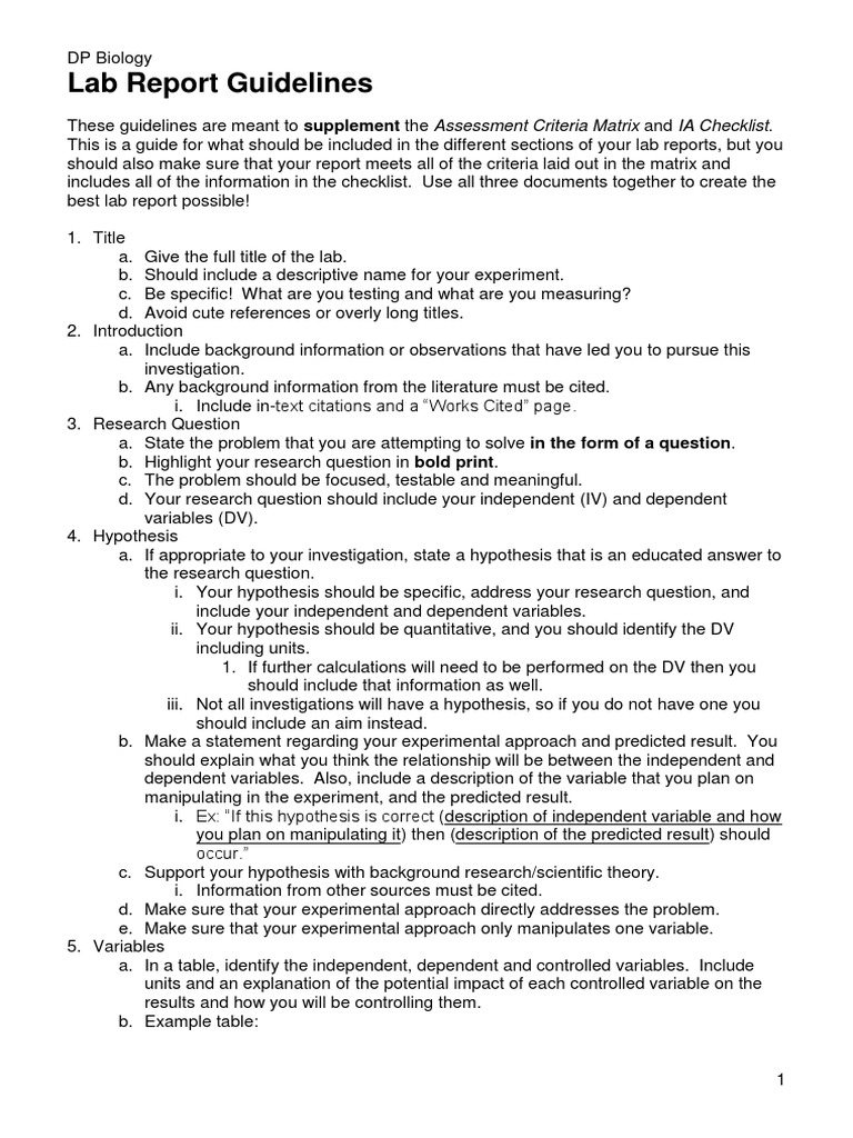 Ib Lab Report Example Biology at Harrison Grove blog