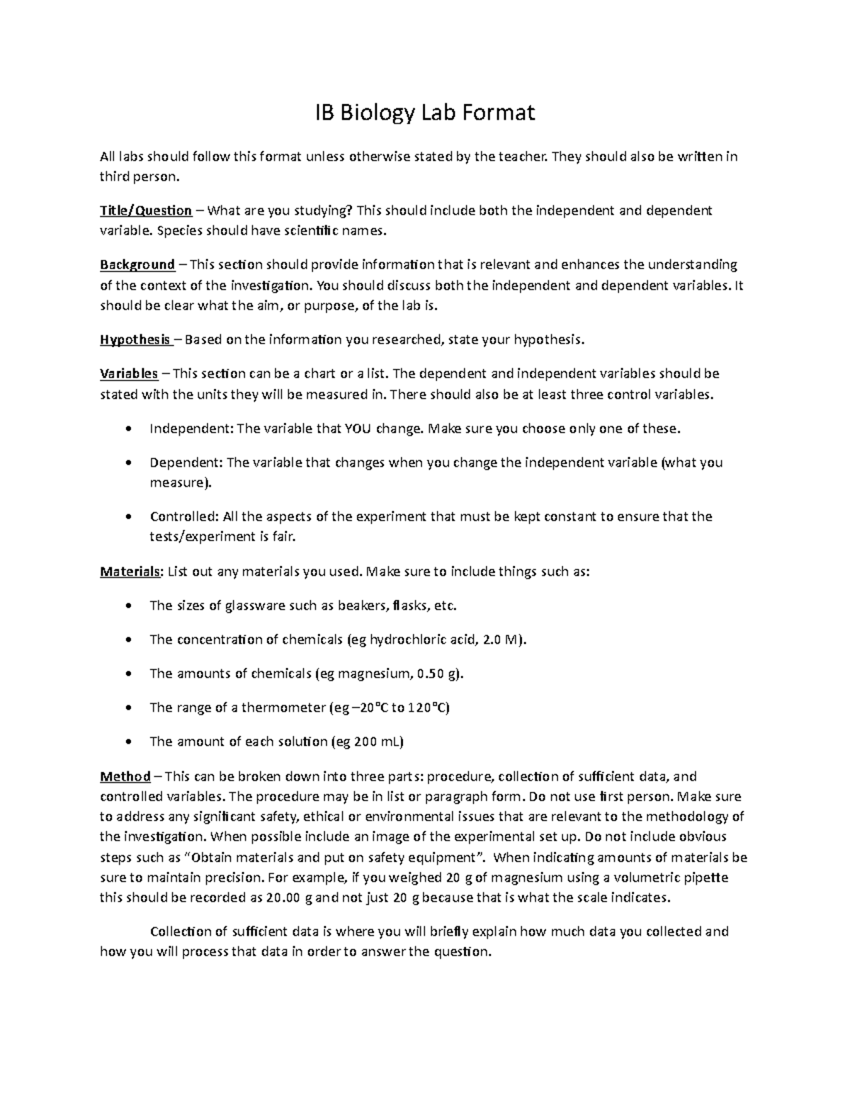IB Lab Report Guide FINAL.doc - IB Lab Report/IA Guide ← ← I. Lab ...
