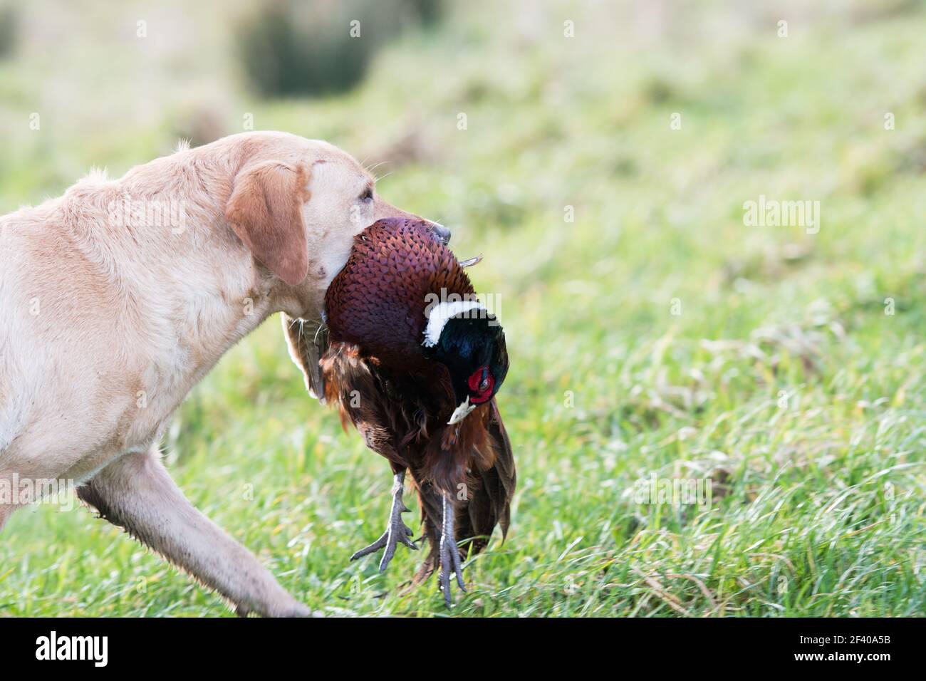 Labrador retrieving a pheasant Stock Photo - Alamy