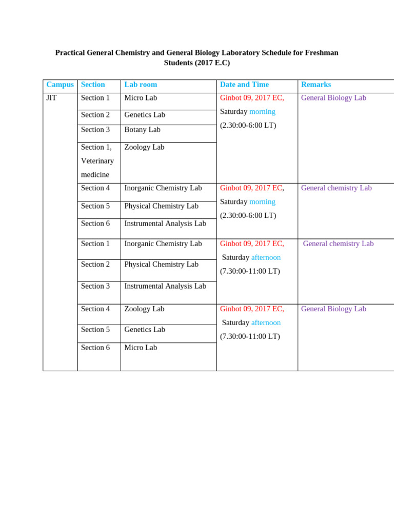 Practical Laboratory Schedule (2017EC) - 2025 | PDF