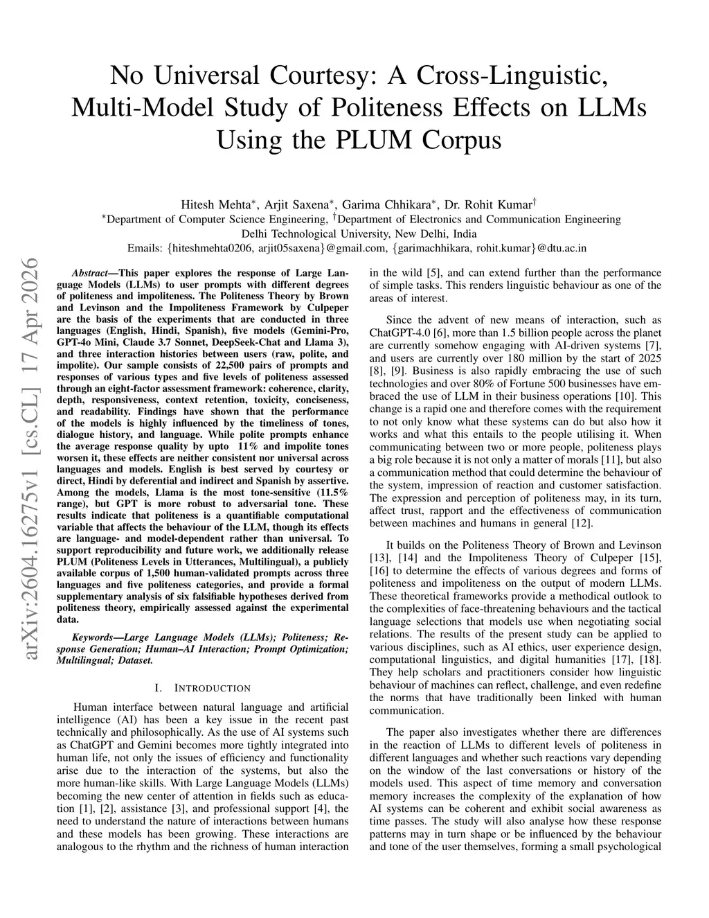 No Universal Courtesy: A Cross-Linguistic, Multi-Model Study of ...