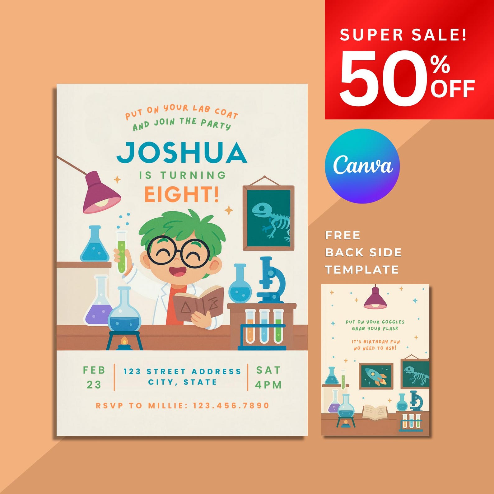 Scientist Lab Birthday: FREE Template Planner & Canva Invitations