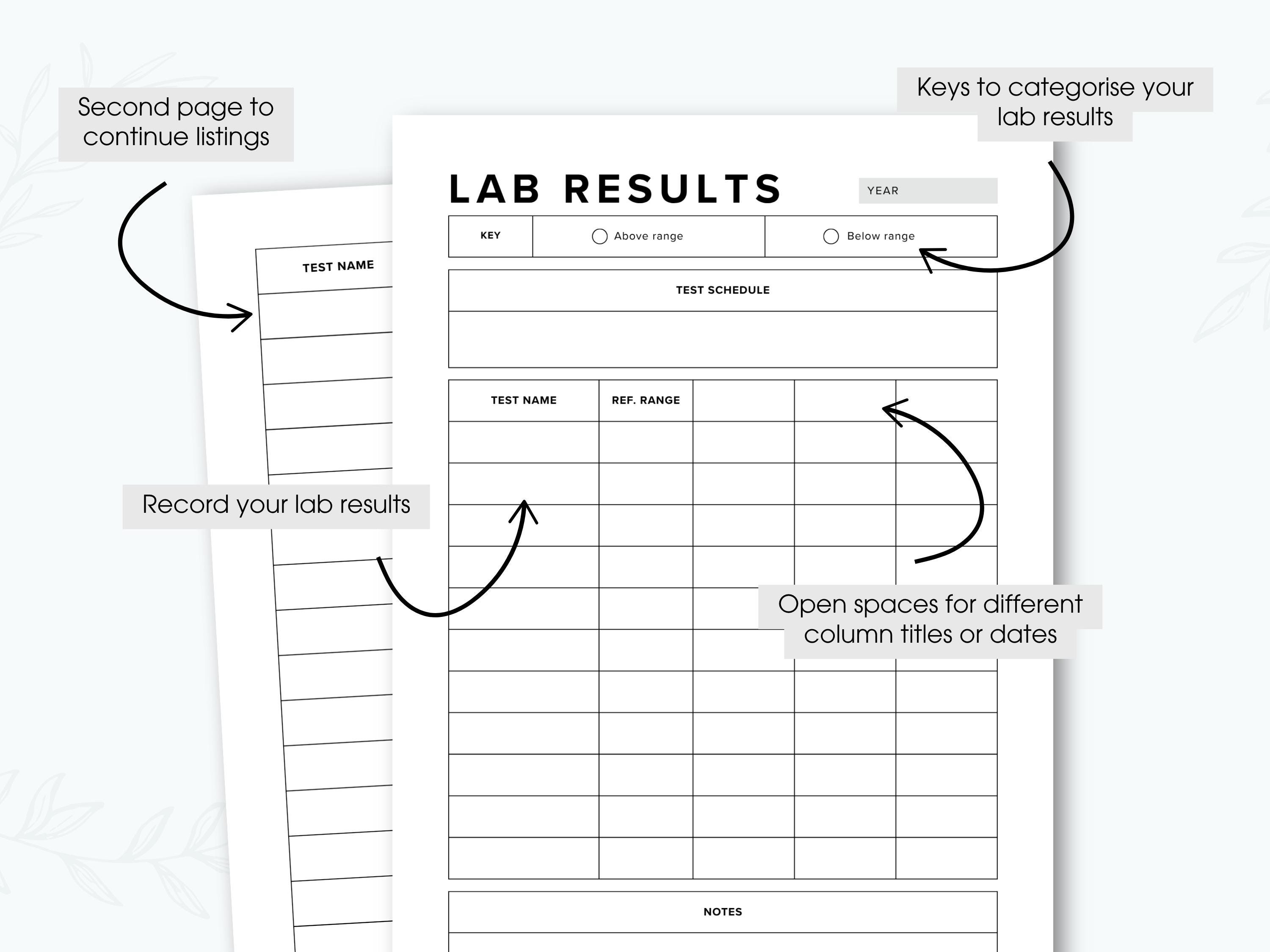 Lab Results Tracker Printable PDF - Etsy