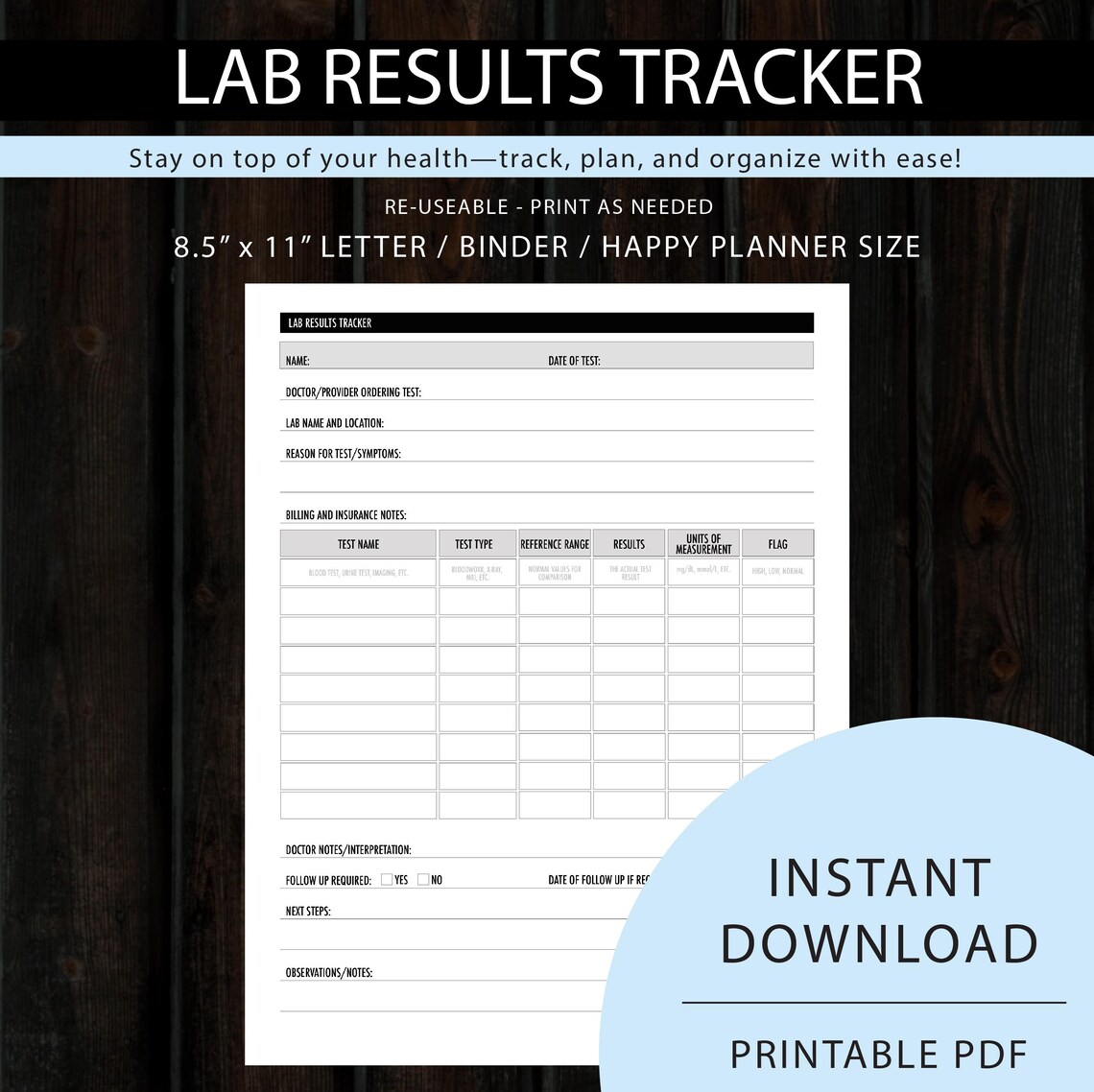Lab Tracker | Lab Results Tracker | Digital & Printable | Editable PDF ...