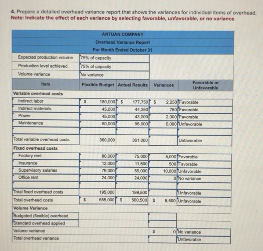 Solved: Prepare a detailed overhead variance report that shows the ...
