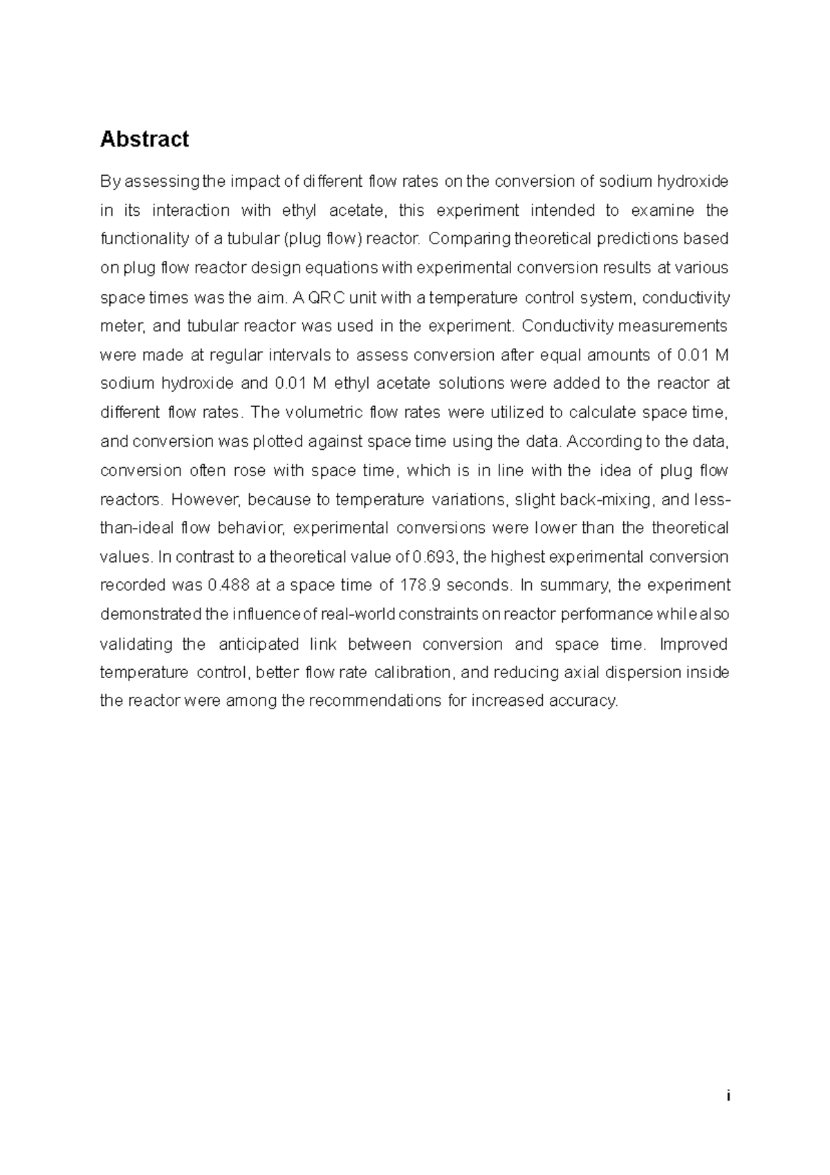Tubular Reactor Lab Report: Impact of Flow Rates on NaOH Conversion ...