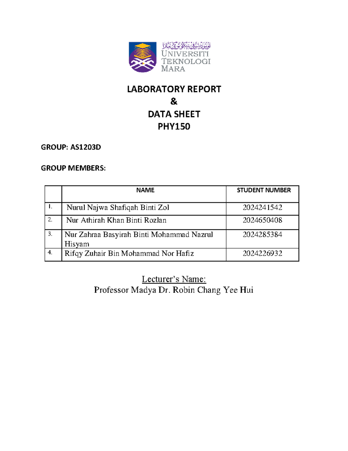 Lab Report 3 for PHY150 - Group AS1203D - Studocu