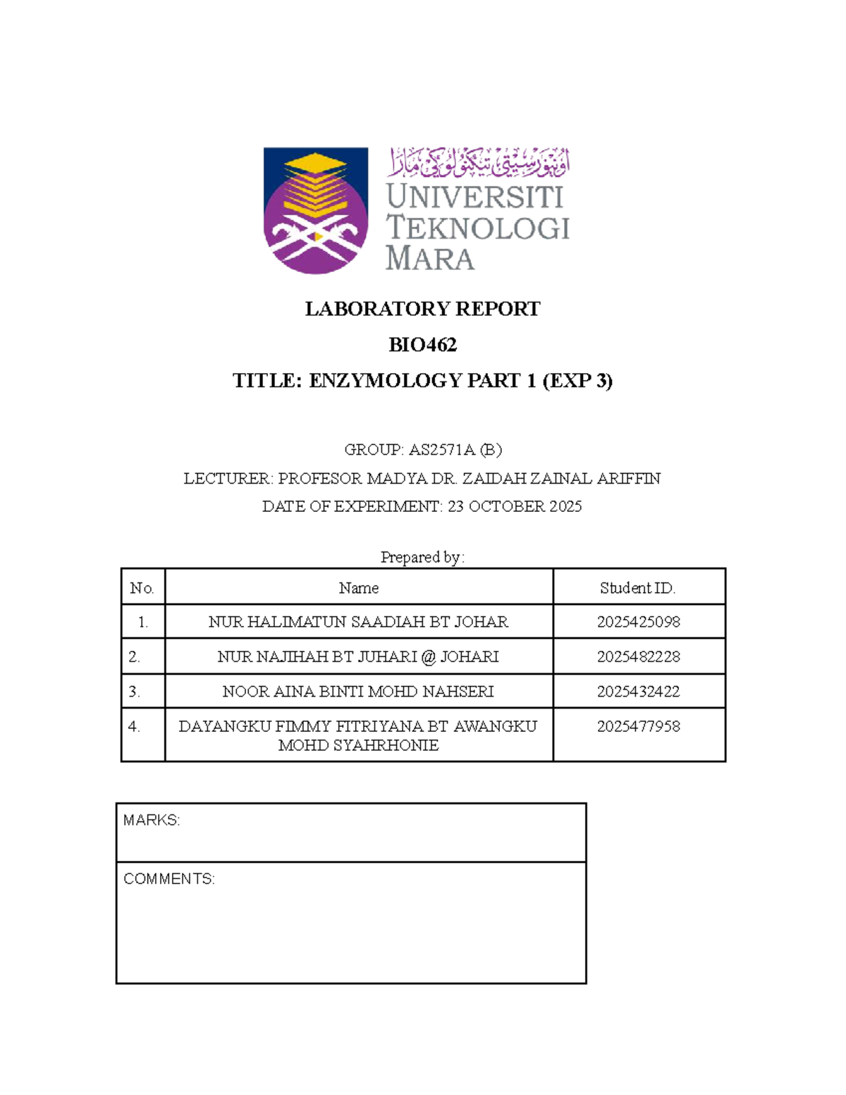 ENZYMOLOGY LAB REPORT PART 1 (EXP AS2571A) - 23 OCTOBER - Studocu