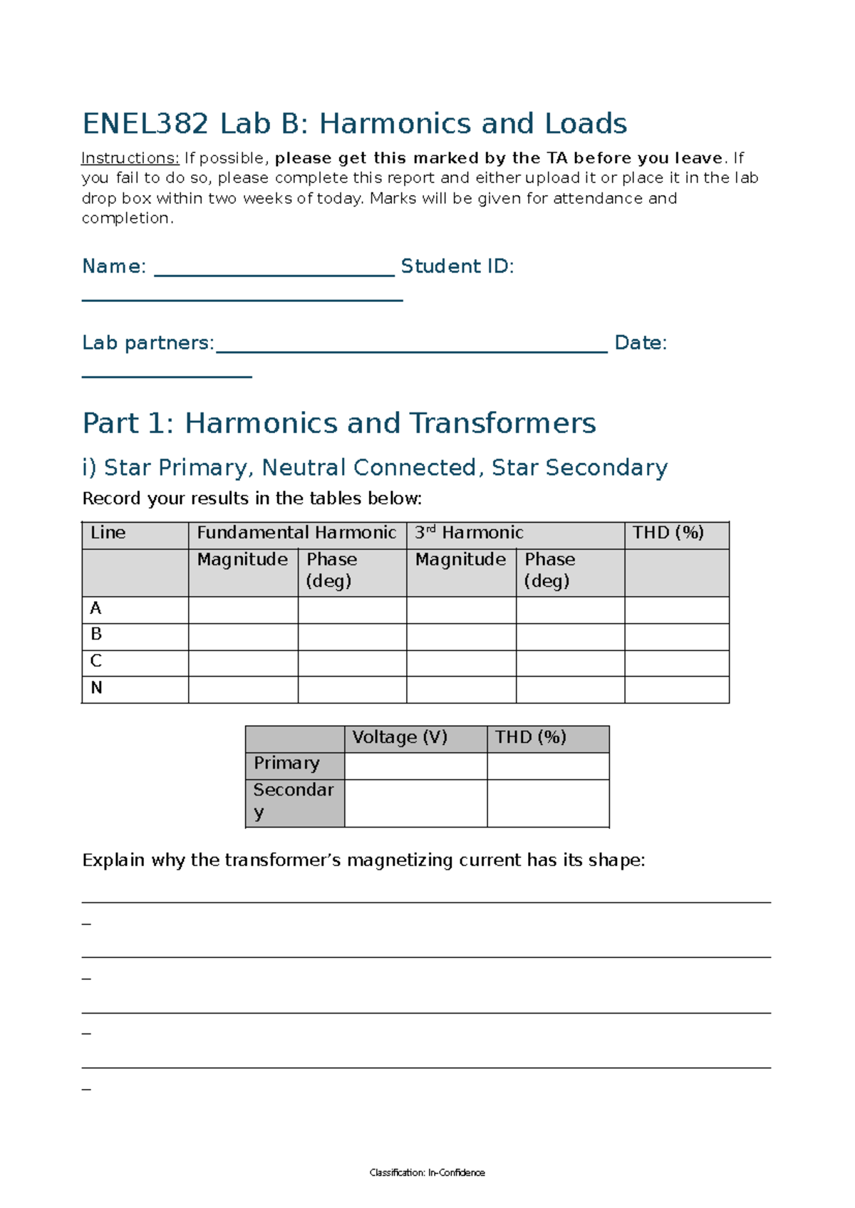 ENEL382 Lab B: Harmonics & Loads Report Instructions - Studocu