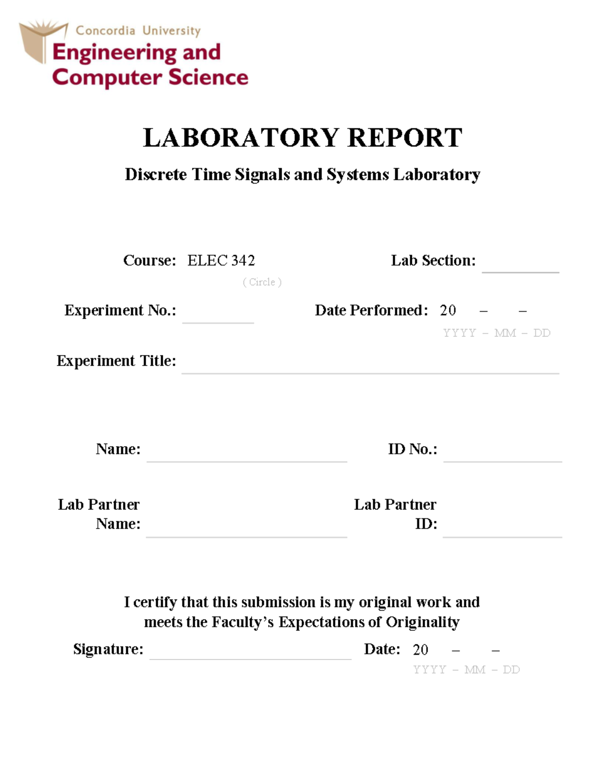 ELEC 342 Laboratory Report: Discrete Time Signals & Systems - Studocu