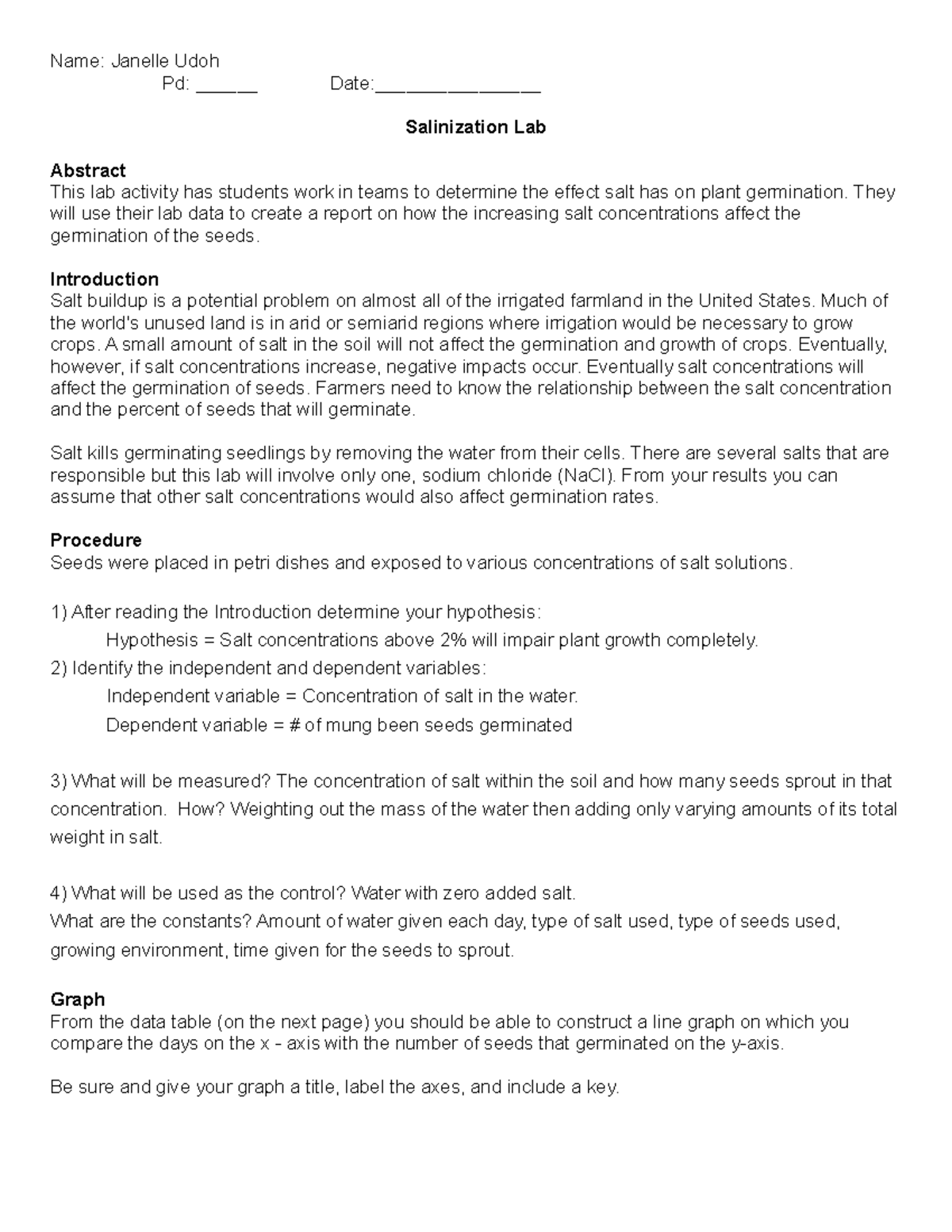 Salinization Lab Report: Effects of Salt on Seed Germination - Studocu