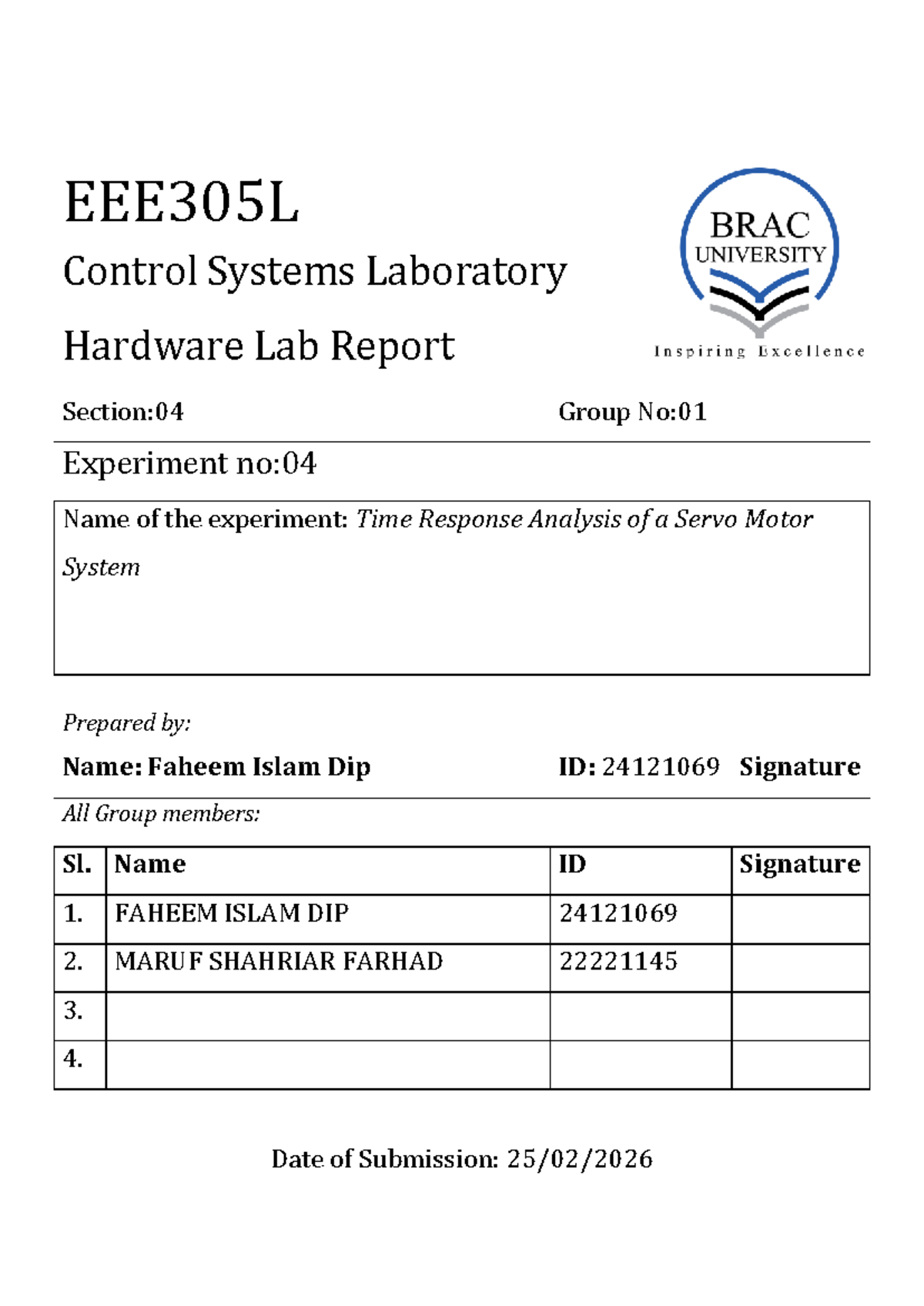 EEE305L Control Systems Lab Report: Time Response Analysis of Servo ...