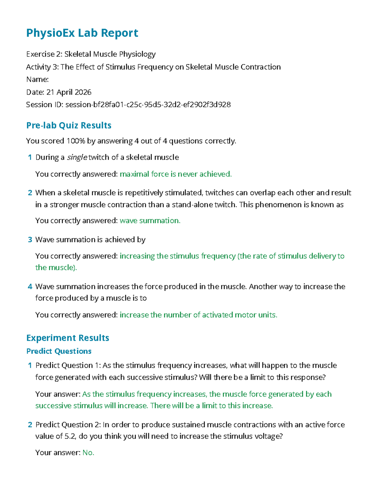 PhysioEx Lab Report: Skeletal Muscle Physiology (Exercise 2, Activity 3 ...