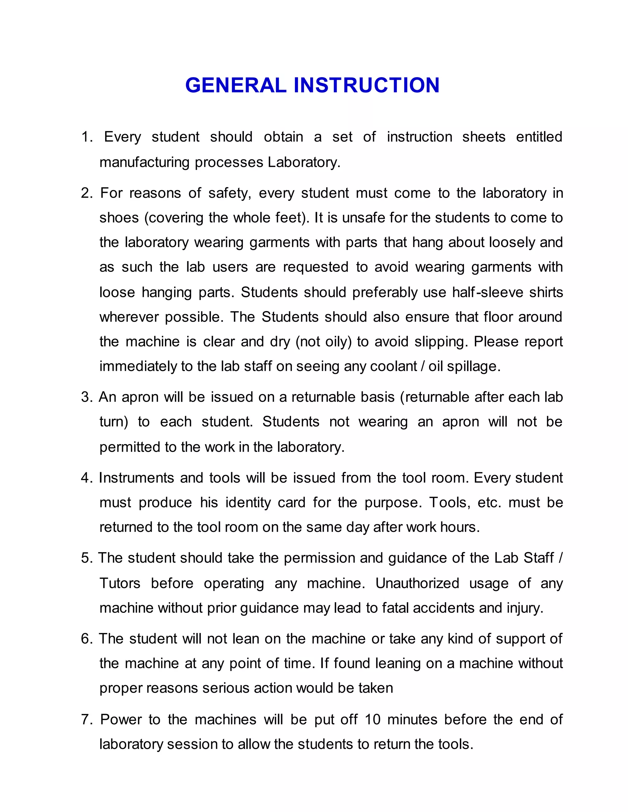 3.0 GENERAL INSTRUCTIONS FOR LABORATORY PRACTICALS: ~ LAB PRACTICALS TZ