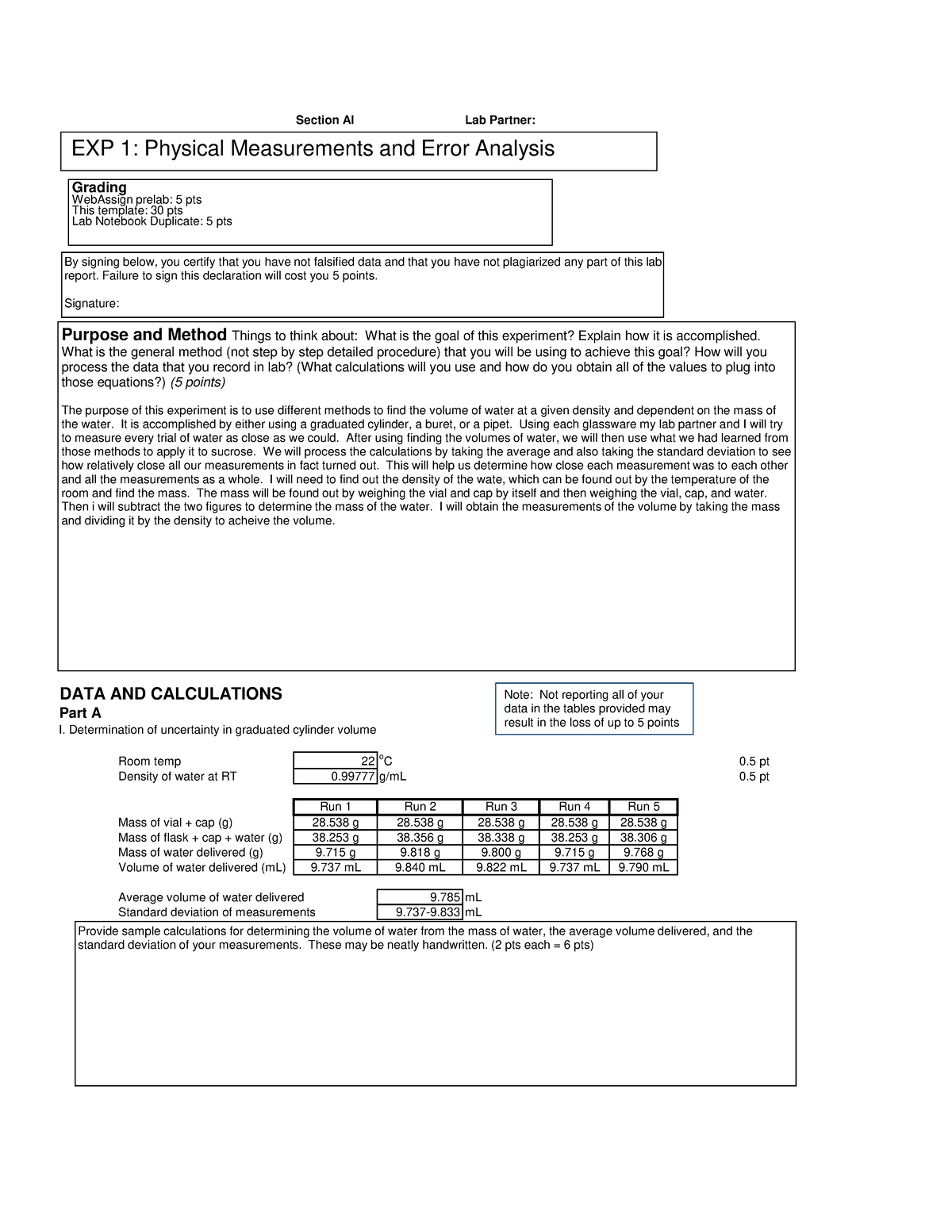 Lab 1 Write Up - CHEMISTRY - Section AI Lab Partner: DATA AND ...
