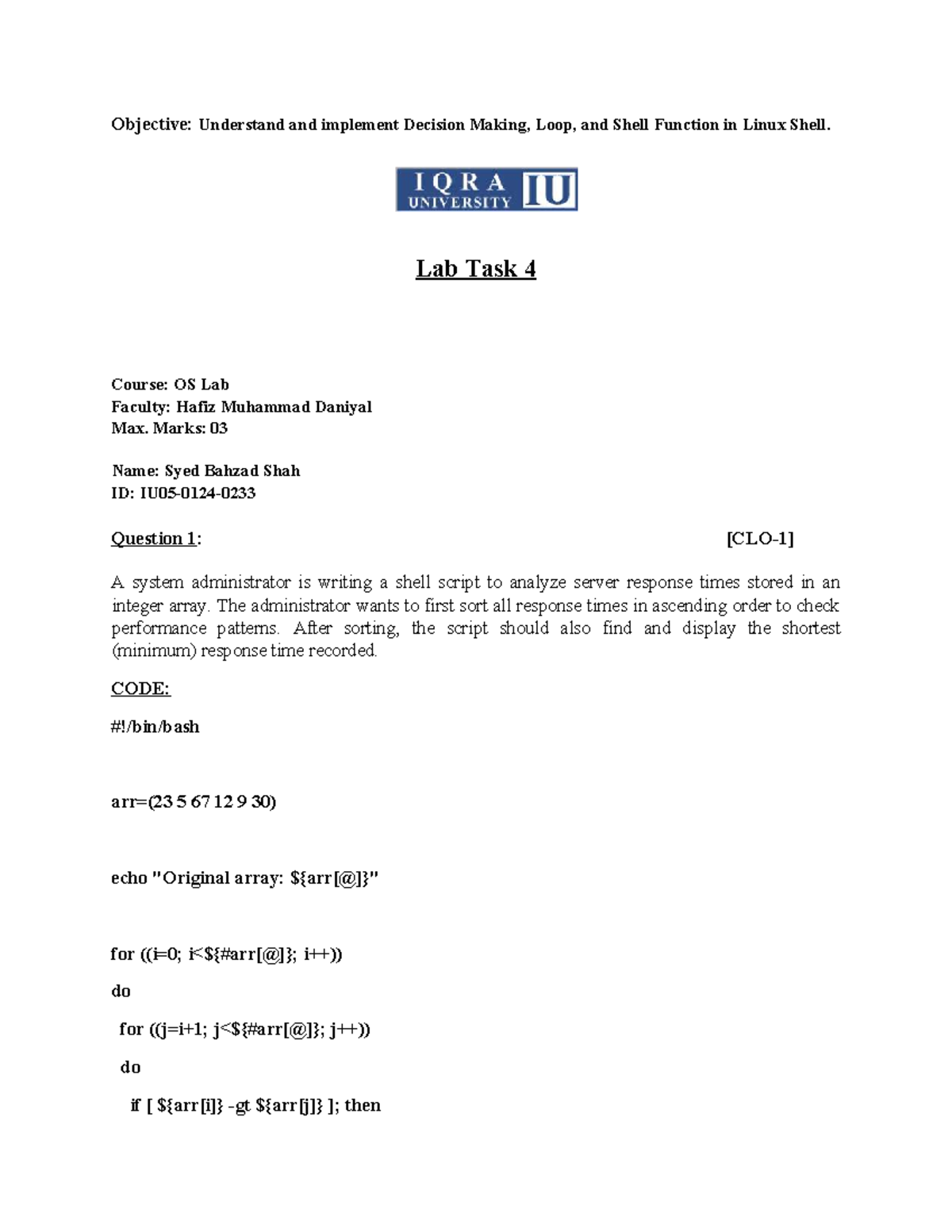 Lab Task 4: Decision Making & Loop in Linux Shell - Studocu