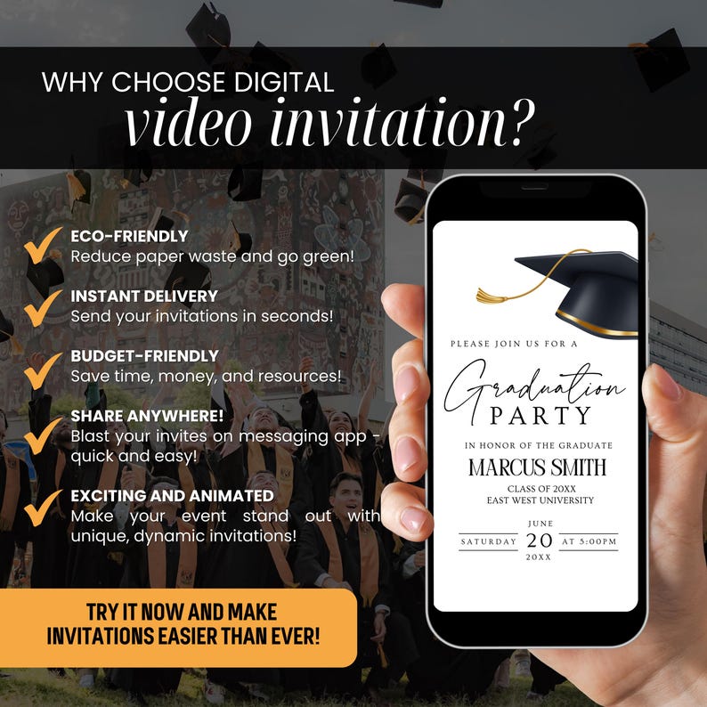 Minimalist Graduation Save the Date Invitation, College Grad Video ...