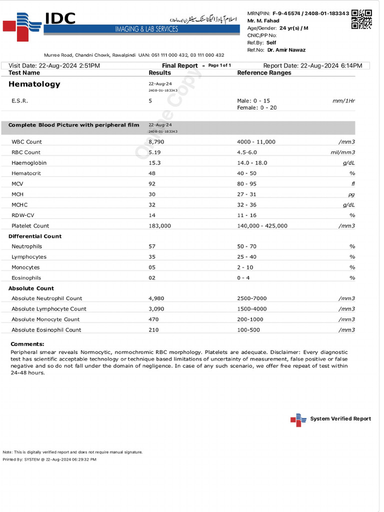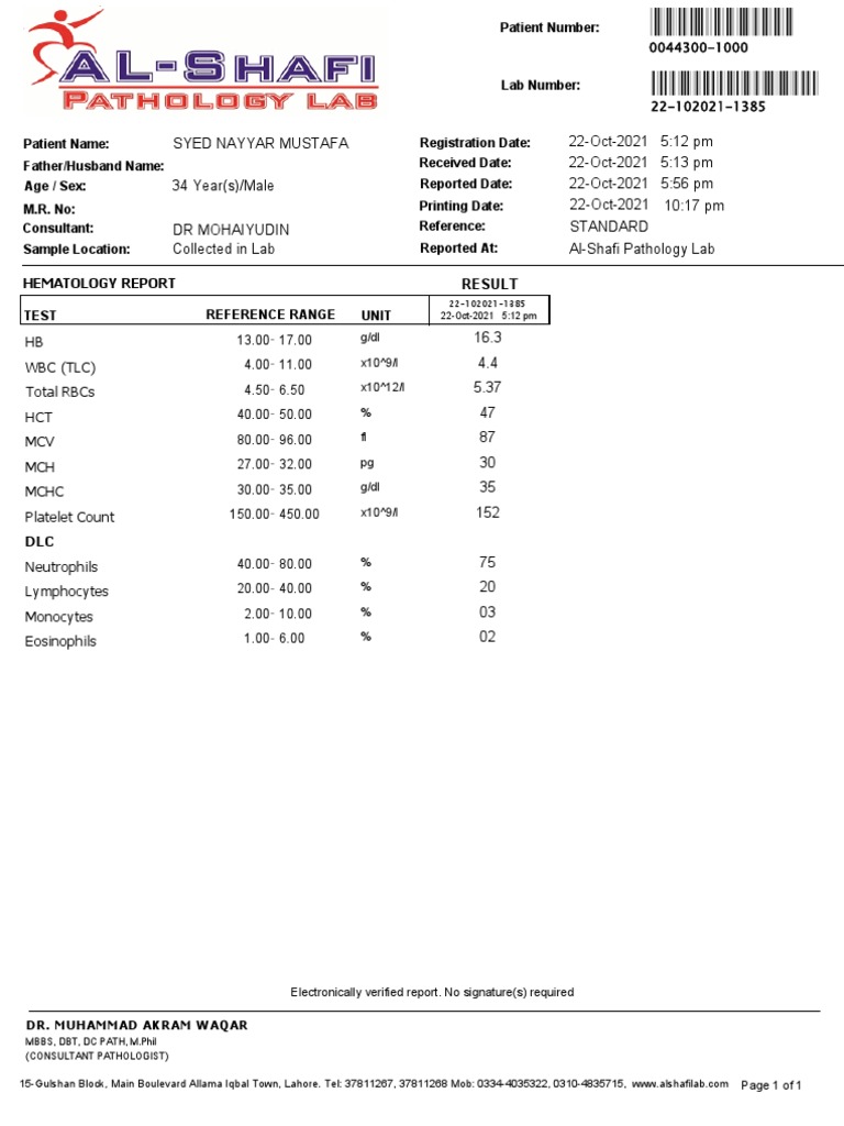 Complete Blood Count (CBC) Report Format | MS Word & Pdf