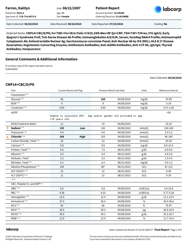 Labcorp - Patient - Kaitlyn Bloodwork Results 7-15-24 | PDF