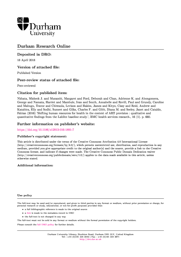 (PDF) Shifting human resources for health in the context of ART ...