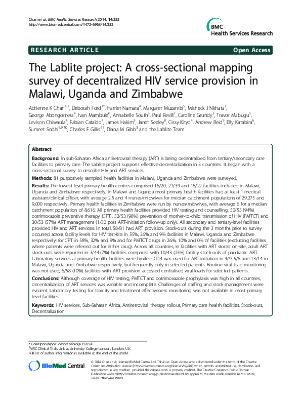 (PDF) Lablite: baseline mapping survey of decentralised ART service ...