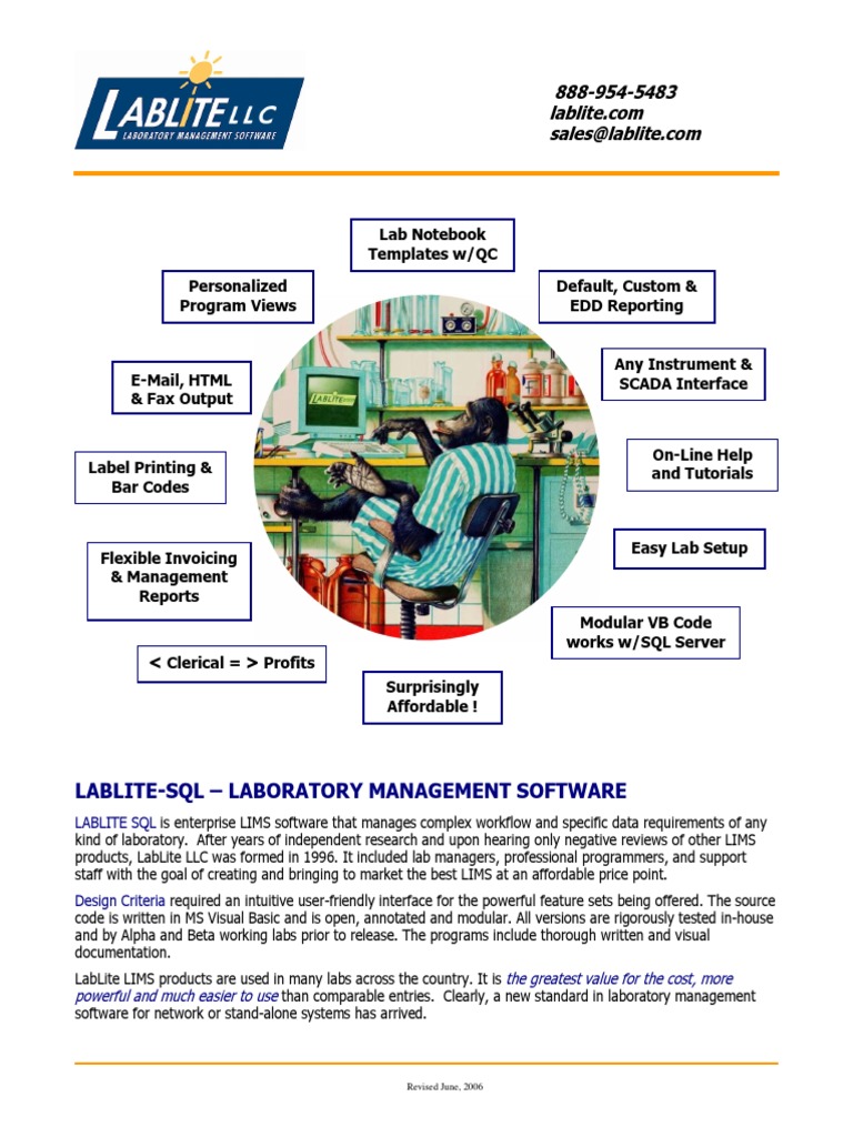 LabLite LIMS Brochure | PDF | Sql | Windows Xp