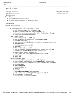 Labsim Windows backup Answers - 11/20/22, 5:59 PM TestOut LabSim - Studocu