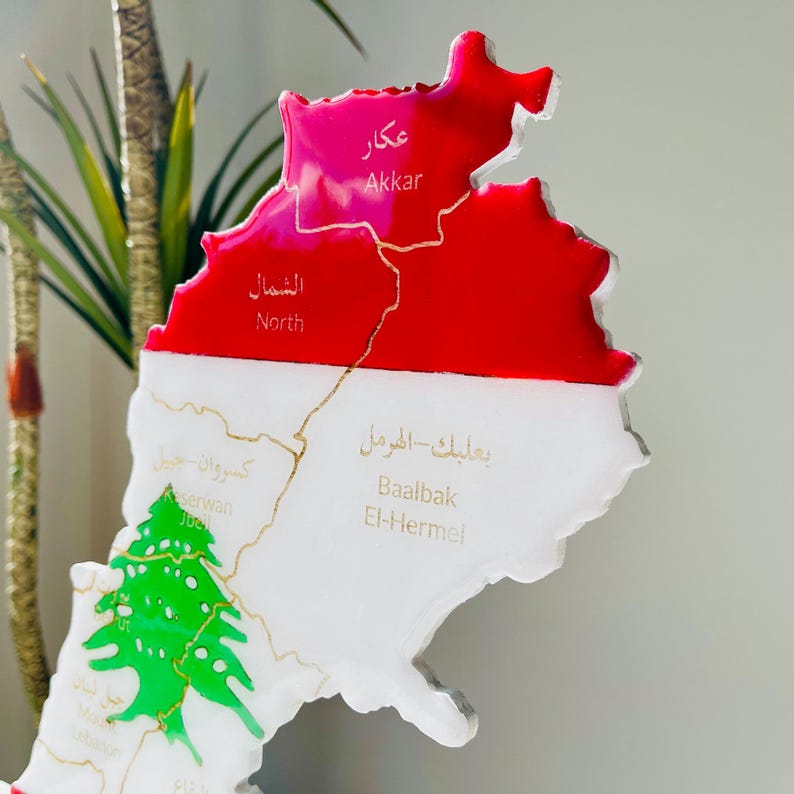 Lebanon Map, Flag Colours, Engraved Governorates - Resin Finish ...
