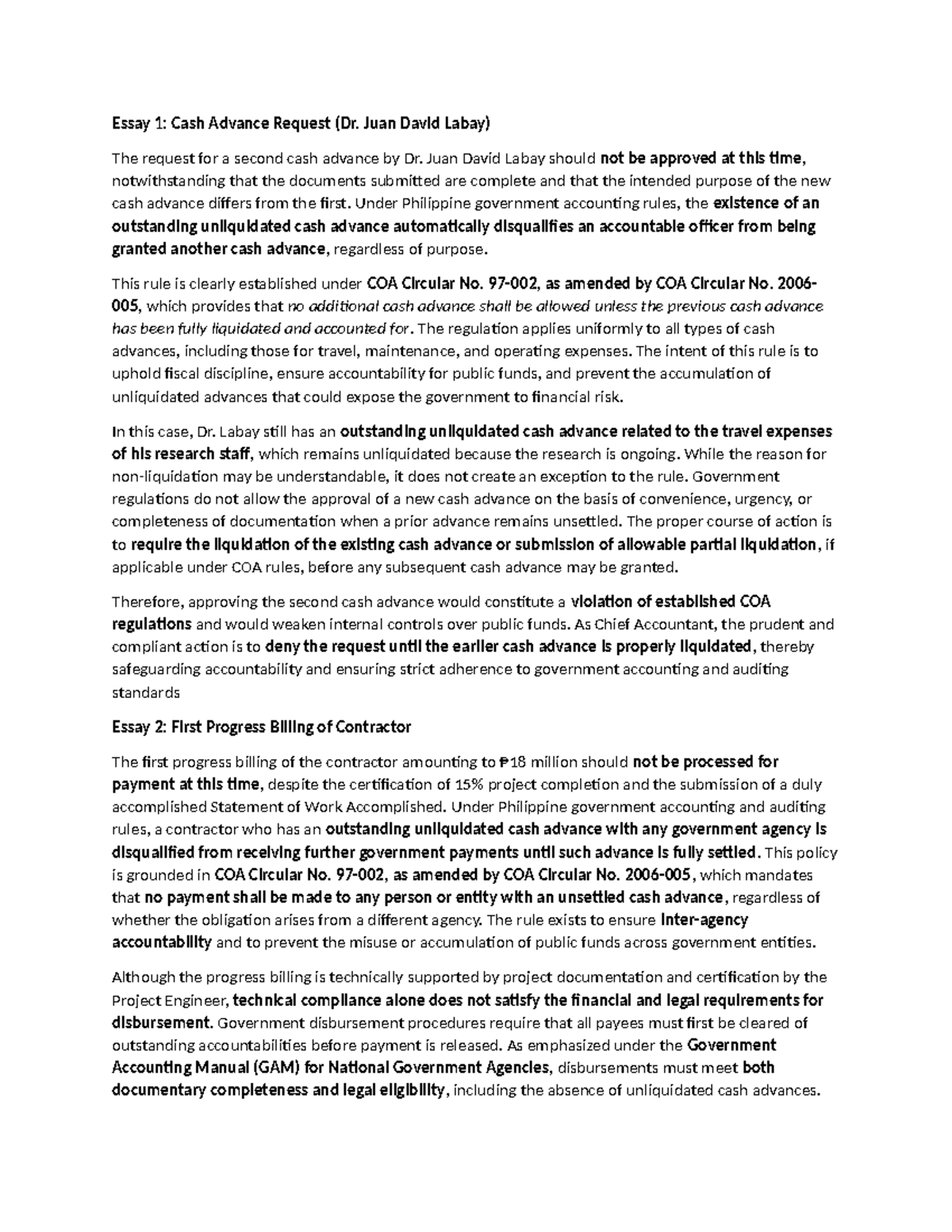 Essay 1: Cash Advance Request Review (Dr. Juan David Labay) - Studocu