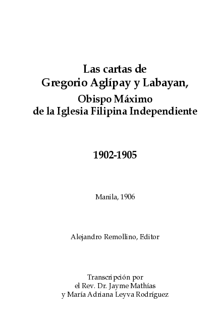 (PDF) Las cartas de Gregorio Aglípay y Labayan, Obispo Máximo de la ...